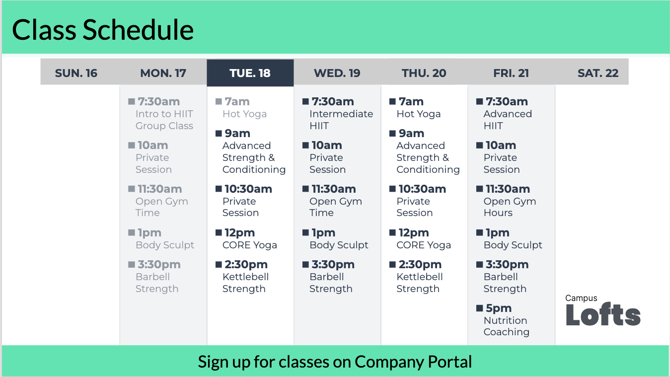 Screenfeed partnered with GAV Management AV to deliver a custom project to the headquarters of a major retail bank. Where custom dynamic apps managed with Microsoft 365, were built for long term meeting space bookings as well as custom designs for fitness class Schedules providing a consistent experience across multiple displays. Keeping the team members updated while streamlining the workplace experience.